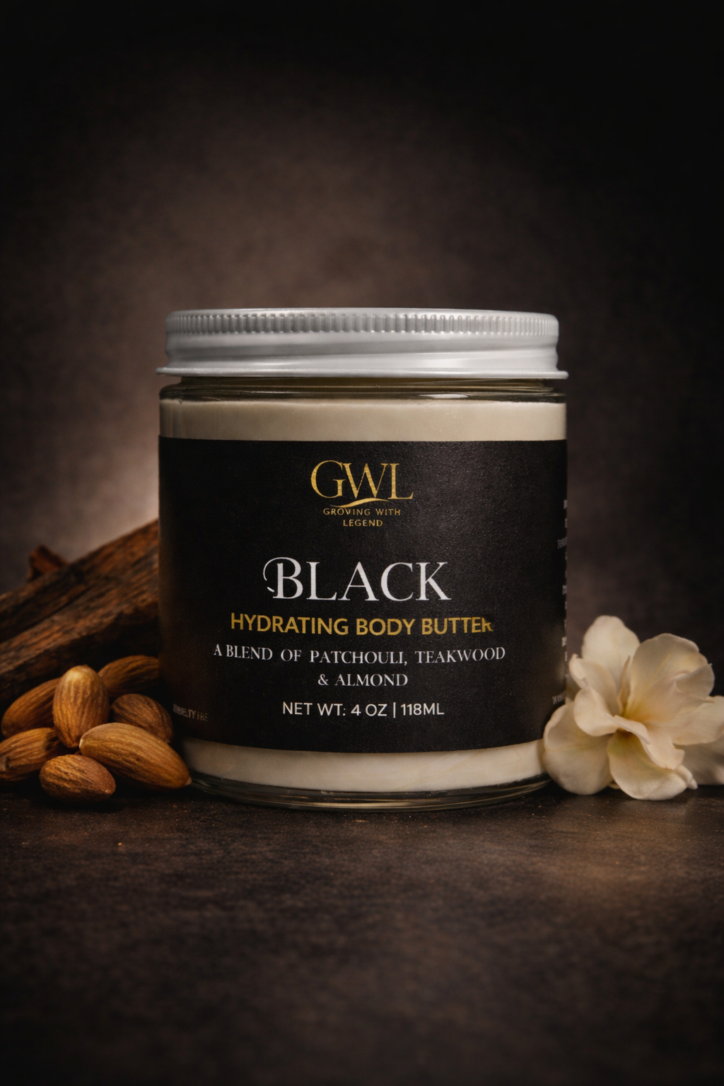 The Black Suede Collection embodies quiet strength, confidence, and refinement. Rich yet controlled, this collection blends deep hydration with a warm, sophisticated aroma designed to sit close to the skin. Earthy patchouli grounds the scent, almond softens the profile, and teakwood adds structure and depth — creating a balanced, masculine finish.
