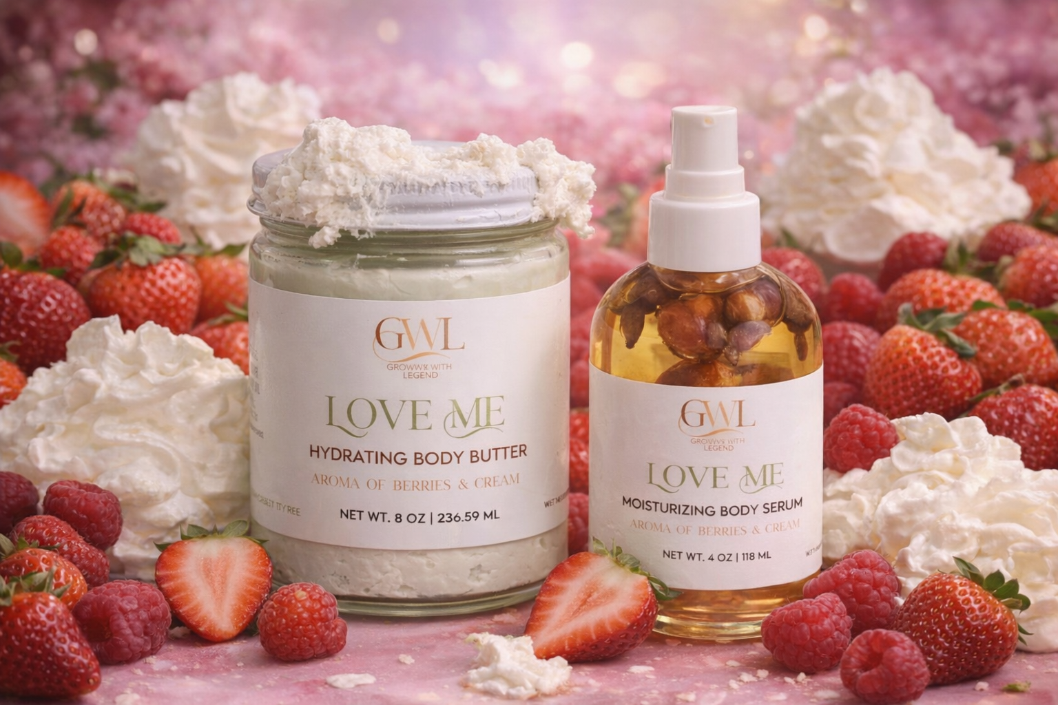 Wrap your skin in the comforting indulgence of the Love Me Collection — a softly decadent blend designed to nourish deeply, restore radiance, and reinforce a ritual of self-worth. Infused with a creamy berry accord kissed with ripe strawberry, Love Me delivers all-day hydration, skin-soothing care, and a smooth, luminous finish that feels intimate rather than overpowering.
